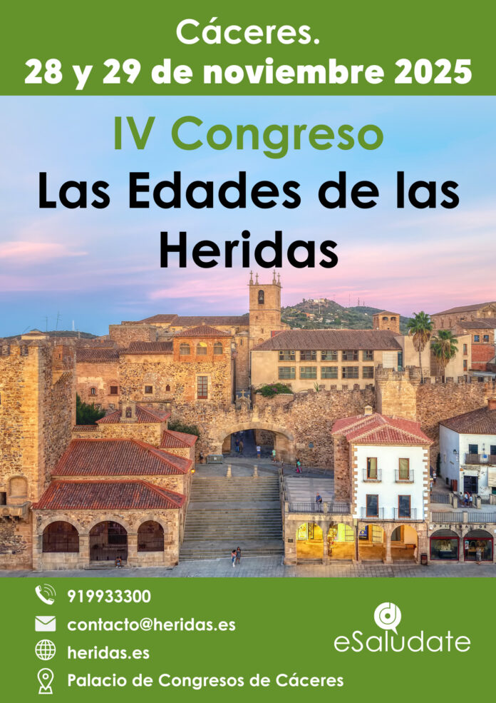 La ciudad de Cáceres acogerá, los próximos 28 y 29 de noviembre de 2025, el IV Congreso “Las Edades de las Heridas”, organizado por eSalùdate.