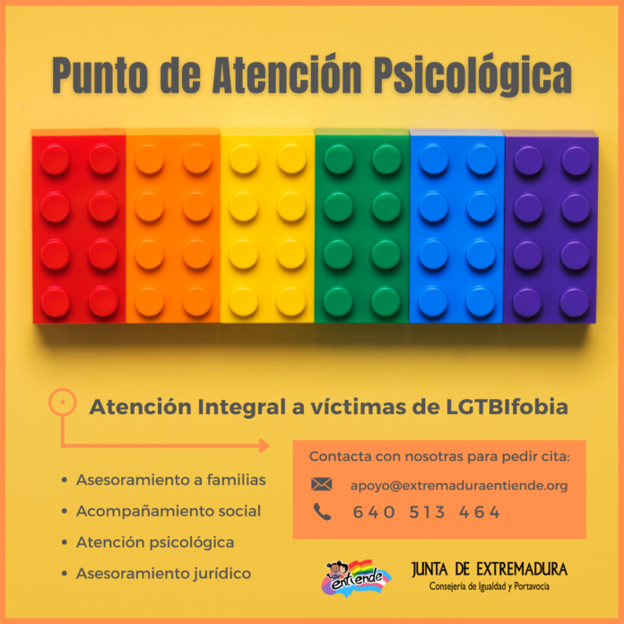 La asociación Extremadura Entiende ha lanzado un punto de atención psicológica y orientación jurídica a personas LGBTI+, con financiación de la Junta de Extremadura.